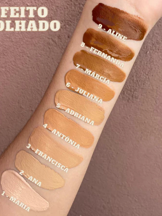 Após higienização da pele e primer lágrima rose gold, aplicar a base de maneira uniforme usando um pincel, esponja ou os dedos.