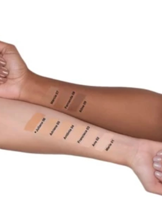 A coleção conta com 9 tons de bases, que vão dos mais claros até os tons de pele negras, 5 tons de corretivos, que possuem a mesma proposta das bases, três cores de pó facial solto, bruma e primer.